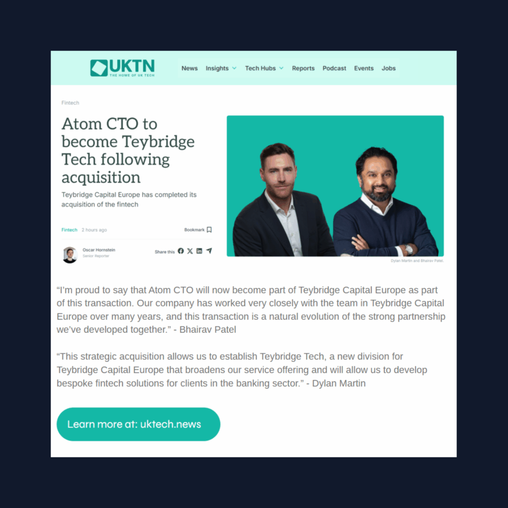 UK Tech News Article: Atom CTO to become Teybridge Tech following acquisition